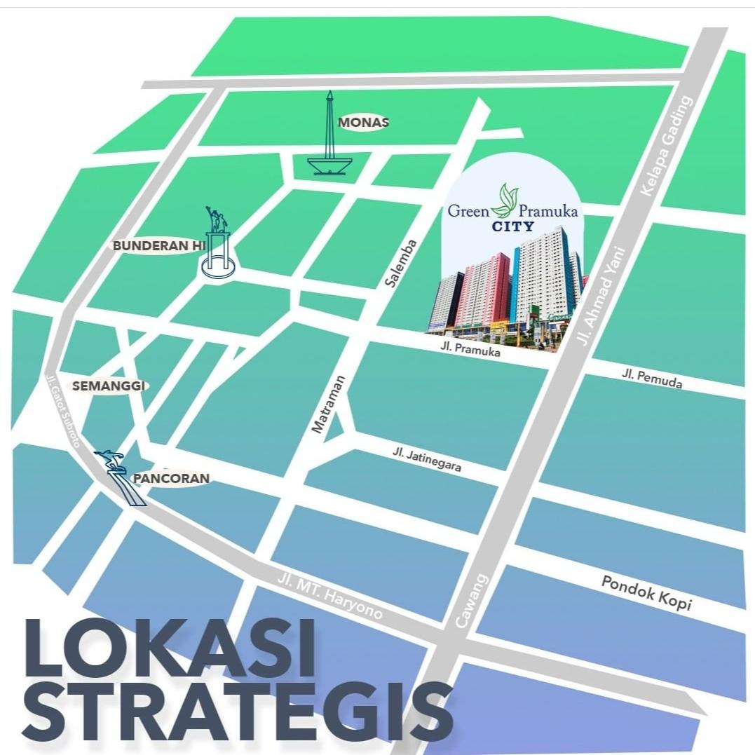 Dijual unit apartemen Green Pramuka City Tower Penelope type Studio kosong lantai 18, diatas Mall (Green Pramuka Square Jakarta Pusat), Kondisi unit kosong. unit Studio terbatas jumlahnya disetiap Tower Apartemen Green Pramuka City Jakarta Pusat. Lingkungan aman, tenang, dibawah apartemen ada Mall GPS Lottemart sangat memudahkan untuk membeli segala kebutuhan dan banyak juga resto2 disana. Lokasi sangat strategis berada di perempatan dekat Jln Pramuka dan akses dekat ke pintu TOL Pulomas arah bandara.
